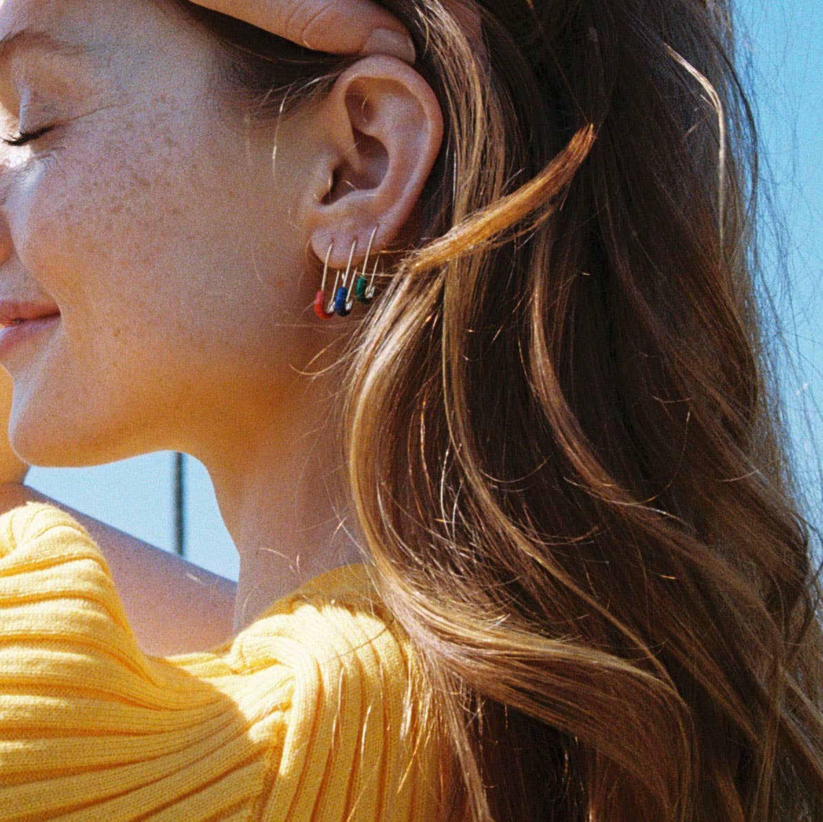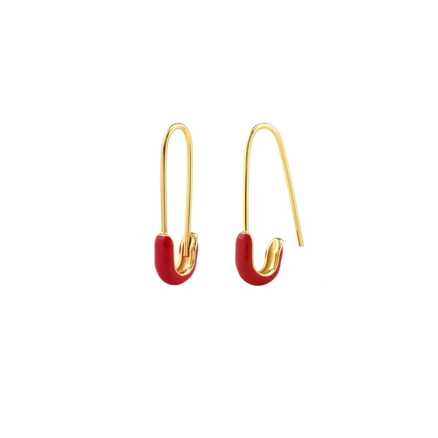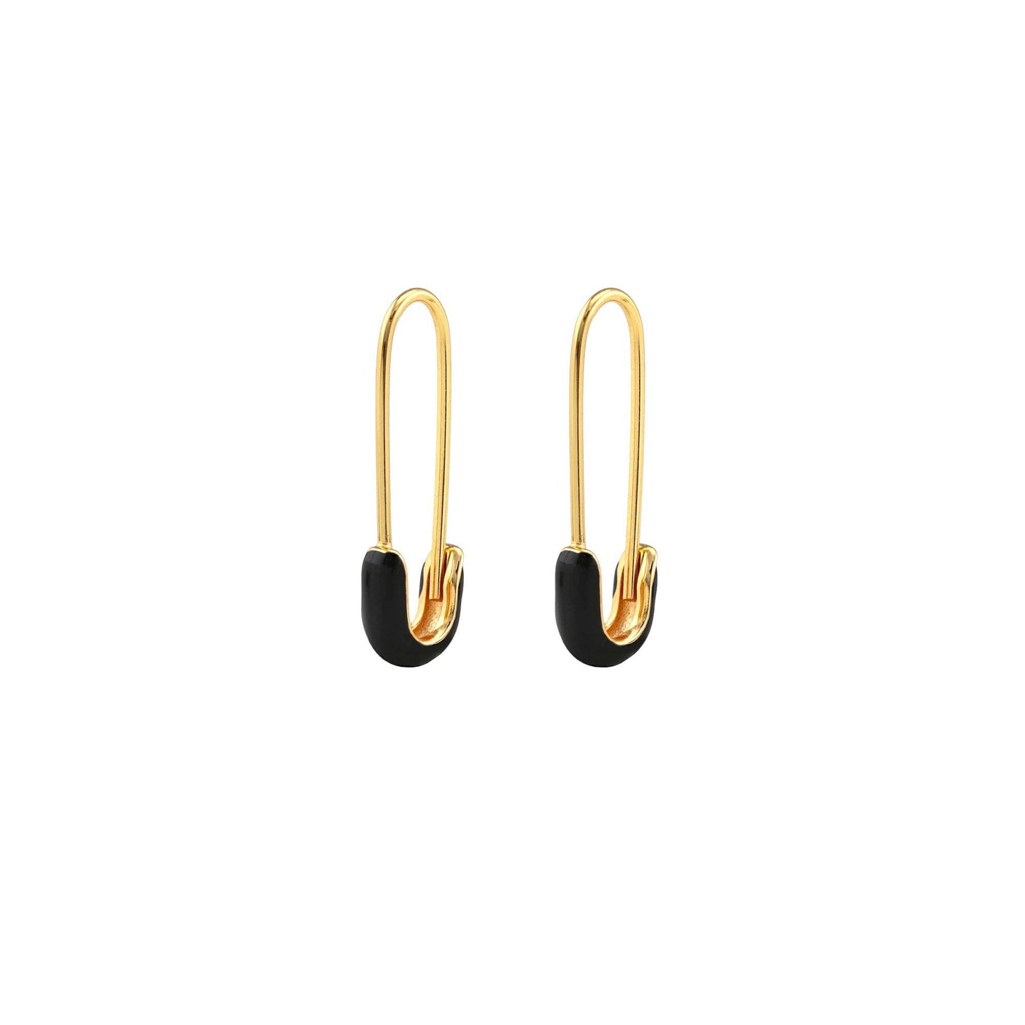 Add a touch of edgy charm to your style with our Safety Pin Enamel Hoop Earrings. These earrings feature a safety pin design with vibrant enamel details. Made in 18K gold vermeil, they measure 22mm in length. These earrings are a fun and versatile addition to your accessory collection. Packaged in our signature glass bottle.
