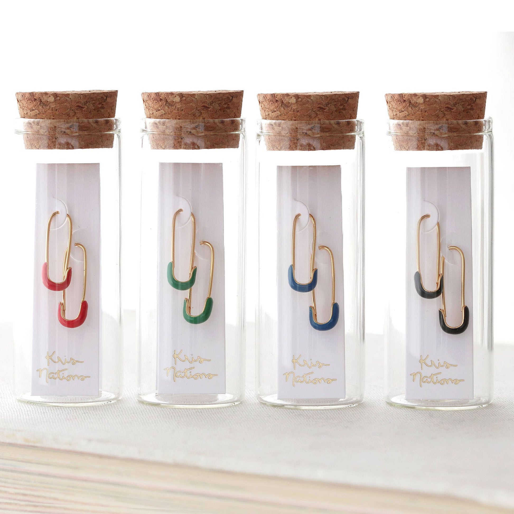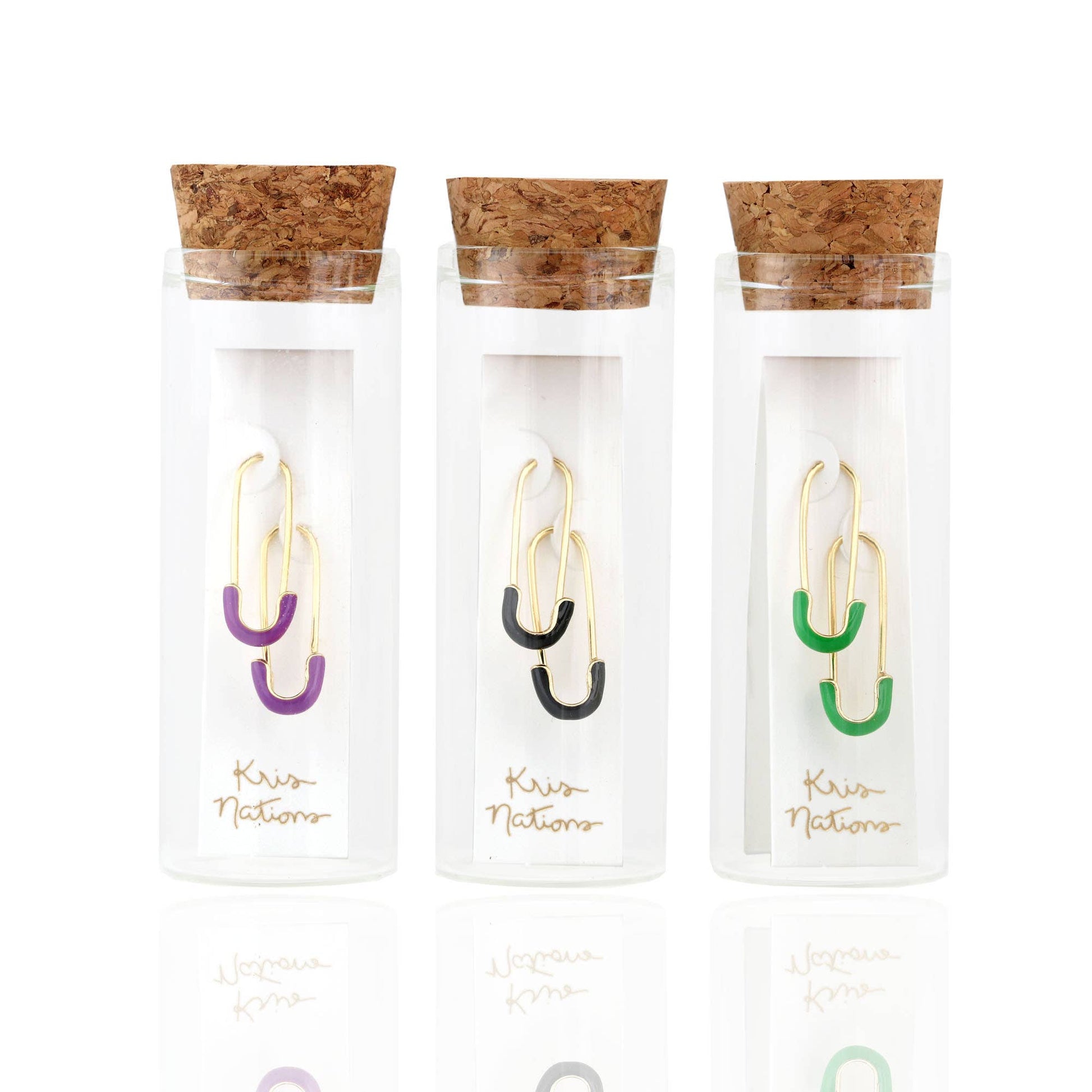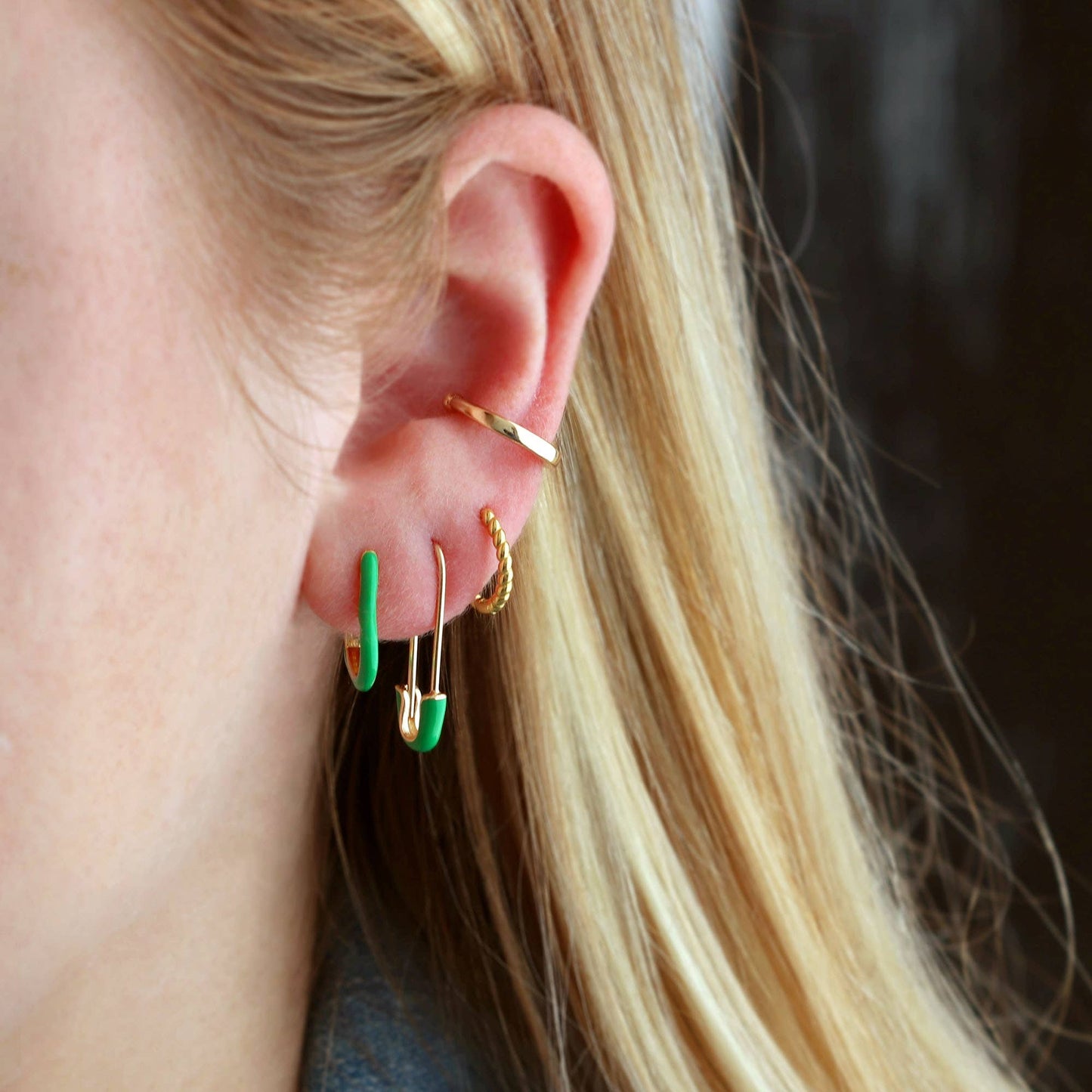 Safety Pin Enamel Hoop Earrings 18K Gold Vermeil 22mm Length Hoops Multiple Colors Nickel Free Hypoallergenic Ships from CA: Green